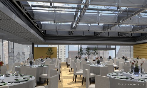 Conference - banquet room with support spaces on the deck of Philadelphia Orchestra at Kimmel Center; 850m2.